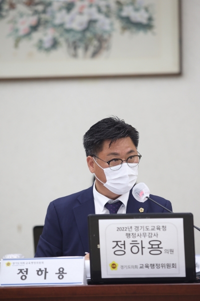 [금요저널] 경기도의회 교육행정위원회 정하용 의원은 7일 경기도교육청 안양·과천, 군포·의왕교육지원청에 대한 2022년도 행정사무감사 제1분반 활동에서 솜방망이 수준에 그치고 있는 4대 비위 처벌 강화와 형평성 제고를 위한 학교운영위원회 지역위원 위촉 개선이 필요함을 촉구했다.
