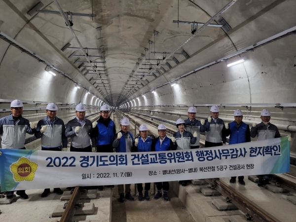 [금요저널] 경기도의회 건설교통위원회는 11월 7일 2022년 행정사무감사 기간 중 별내선 복선전철 공사의 제5공구 현장을 방문해 사업의 전체 공정현황 및 운영계획, 경기도가 시행하는 3~6공구에 대한 공사 추진현황을 브리핑 받았다.