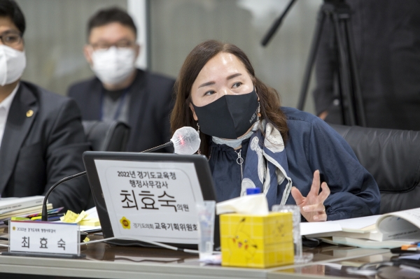 [금요저널] 경기도의회 교육기획위원회 최효숙 의원은 11월 7일 경기도의회 제365회 정례회 중 김포교육지원청에서 열린 김포·부천·양평교육지원청을 대상으로 한 행정사무감사에서 학생들 시민성 부족과 관련해 어른들의 시각으로 먼저 재단하는 문제점을 제기했다.