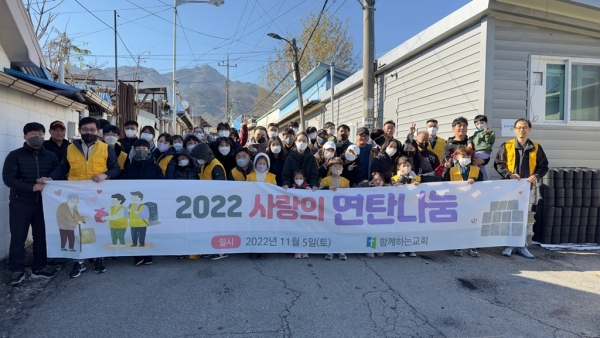 함께하는 교회는 올해뿐만 아니라 작년에도 관내 난방취약계층을 위해 3가구에 1,000장의 연탄을 전달해 ‘100일간 사랑릴레이 배턴 잇기’에 동참했다.