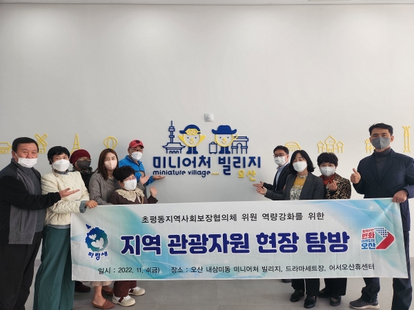 [금요저널] 오산시 초평동은 지난 4일 민관 협력의 구심점으로 동행정에서 다양한 복지 특화사업을 추진하고 있는 지역사회보장협의체 위원들이 지역 관광자원 현장 탐방을 실시했다고 전했다.