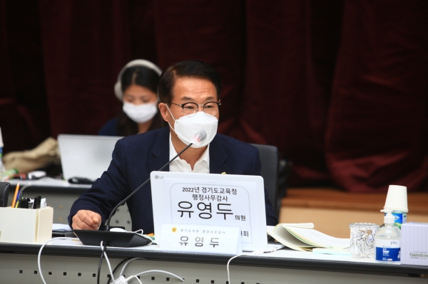 [금요저널] 경기도의회 교육기획위원회 유영두 의원은 11월 8일 경기도의회 제365회 정례회 중 안산교육지원청에서 열린 안산·성남·화성오산·용인·시흥교육지원청을 대상으로 한 행정사무감사에서 학교돌봄터에 미온적 태도를 보이고 있는 용인교육지원청을 질타했다.