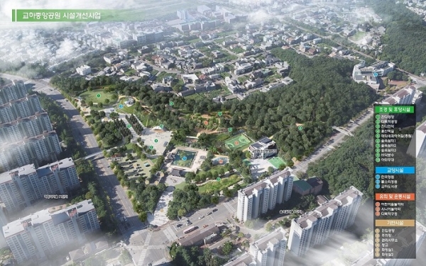 파주시 동패동에 위치한 교하중앙공원은 시설개선사업을 통해 산책로의 정비와 함께 잔디광장과 다목적광장 등 휴식공간 신설 및 주차장 확충, 화장실 등의 편의시설 보강 등의 대대적인 리모델링 공사가 진행될 예정이다.