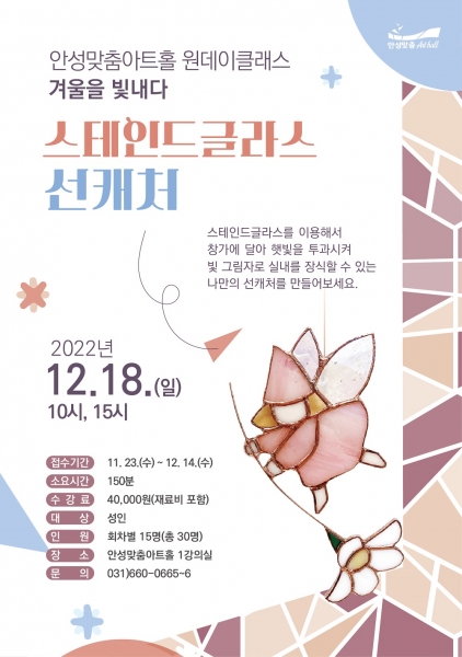 [금요저널] 안성시 안성맞춤아트홀은 문화예술아카데미 겨울 원데이클래스 수강생을 오는 11월 23일부터 모집한다.