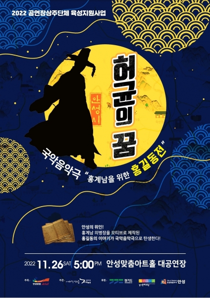 임진왜란 때 안성을 무대로 활약한 홍계남 장군이 홍길동전의 영감이 된 인물은 아니었을까 하는 호기심에서 시작된 이번 작품은 안성에서 나고 자란 홍계남 장군이 허균의 꿈속에 나타나 자신의 삶에 관해 이야기하고 꿈에서 깬 허균은 이를 바탕으로 ‘홍길동전’을 탄생시킨 건 아닐까 하는 상상에서 만들어진 국악음악극이다.