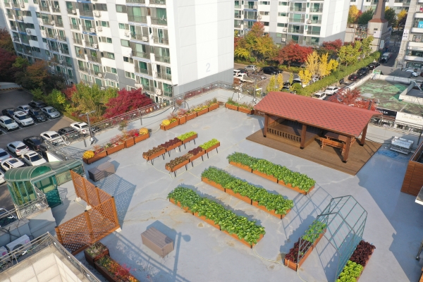 농림축산식품부 ‘2022년도 도시농업 공간조성사업’ 공모사업으로 선정된 갈산2동 나눔옥상텃밭 조성사업은 동 행정복지센터 옥상에 상자형 텃밭 및 휴게시설, 미니 힐링 정원을 조성해 누수·누전 및 미관 저해 문제를 개선했다.