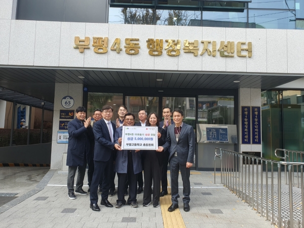 장은주 부평4동장은 “어려운 이웃을 위해 따뜻한 마음을 모아준 부평고등학교 동문회 여러분께 진심으로 감사하다”며 “기부해준 성금은 도움이 필요한 홀몸노인과 저소득 가정에 신속히 지원될 수 있도록 하겠다”고 말했다.