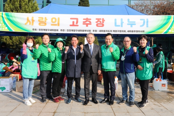 [금요저널] 인천광역시 계양구는 지난 8일 구청 남측광장에서 계양구 새마을회 주최로 새마을협의회, 부녀회, 직장협의회 새마을지도자 등 40명이 참석해‘사랑의 고추장 나누기’행사를 진행했다.