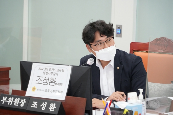 [금요저널] 경기도의회 교육기획위원회 조성환 의원은 11월 9일 경기도의회 제365회 정례회 중 경기도의회 교육기획위원회 회의실에서 열린 경기도교육청 대변인·기획조정실·경기도교육연구원·경기도교육정보기록원·4.16민주시민교육원을 대상으로 한 경기도교육청 행정사무감사에서 경기도교육청이 ‘경기도교육감 업무제휴 및 협약에 관한 조례’를 준수하지 않았다며 조례 위반 문제를 제기했다.