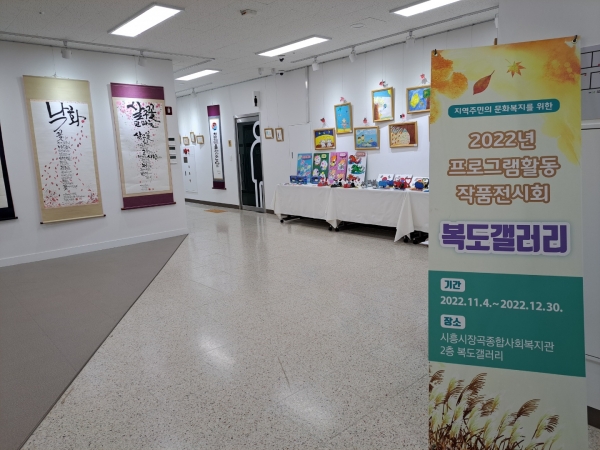 [금요저널] 시흥시 장곡종합사회복지관은 지역주민의 문화 복지를 향상하고자 지난 4일복지관 2층 복도 갤러리에 주민들의 작품을 전시해 주민들이 일상 속에서 문화생활을 즐길 수 있는 시간을 선사하고 있다.