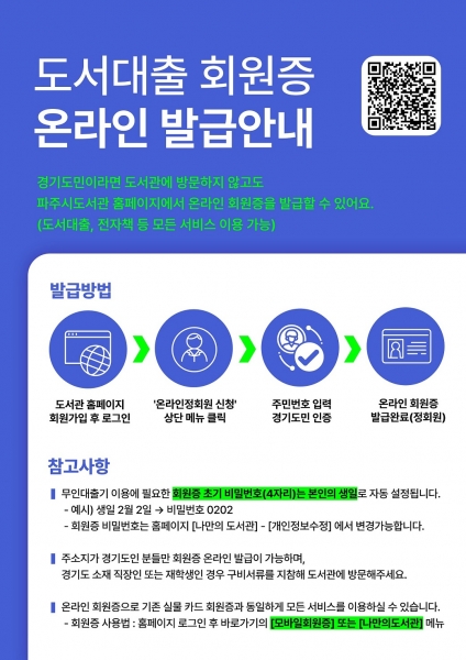 파주시, 도서관 회원증 온라인 발급 시행