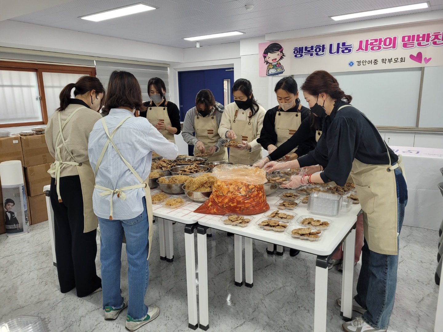 이번 봉사활동은 ‘학부모 학교 참여 지원 사업’의 일환으로 우리 주변에 도움을 필요로 하는 어려운 이웃들을 위한 밑반찬을 만들어 전달하는 행사로, 경안여중 학부모회를 통해 자발적으로 구성된 학부모와 교사가 참여했다.