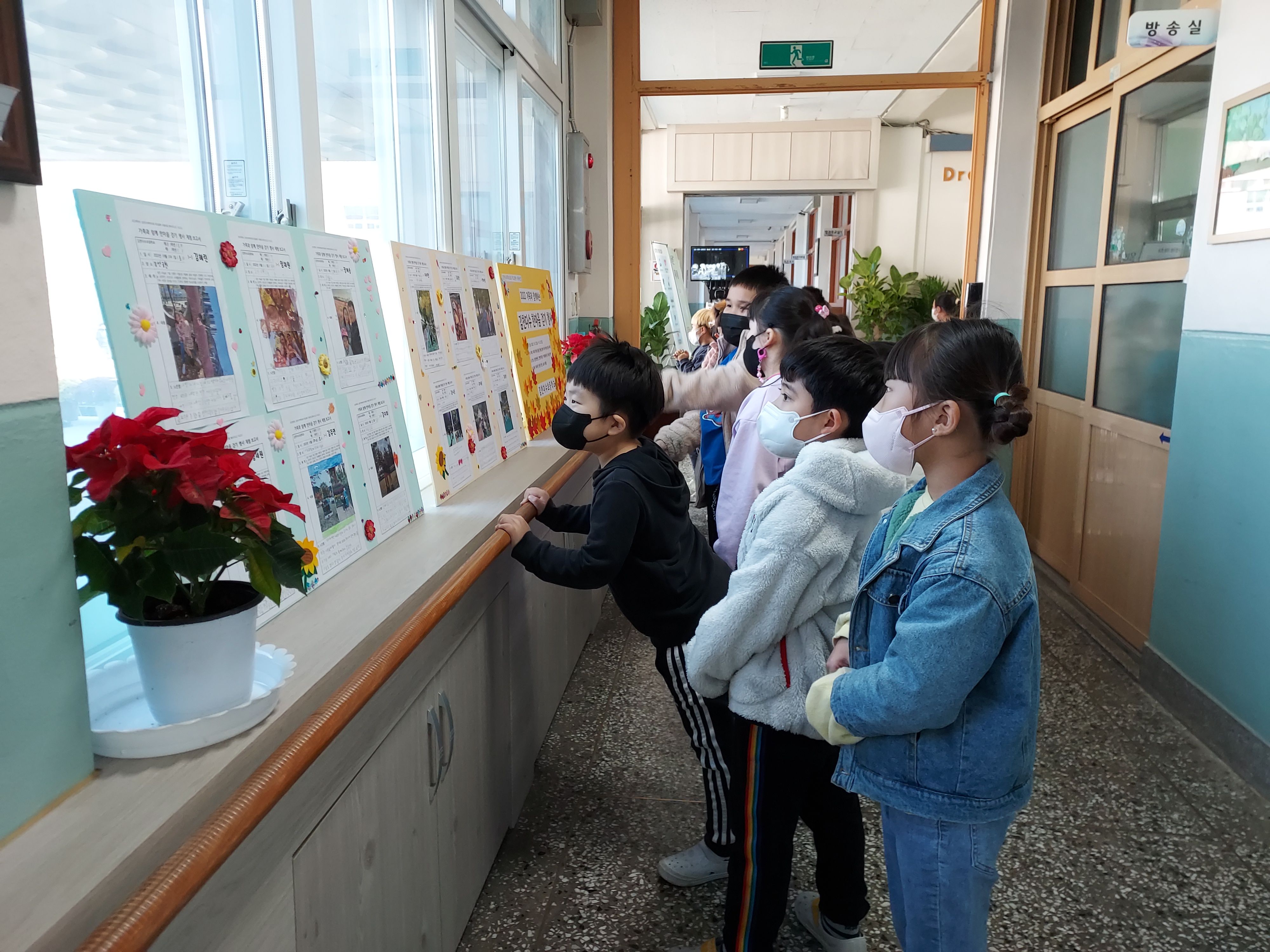 □ 한마음 걷기 행사 종료 후 체험 사진과 보고서는 본교 본관 1층 복도에 전시되었고, 학생들은 반갑게 하나하나 읽어 보면서 뿌듯함과 아쉬움을 나타내며 가족 사랑의 따뜻함과 소중함을 생각해 보는 기회를 가졌다.