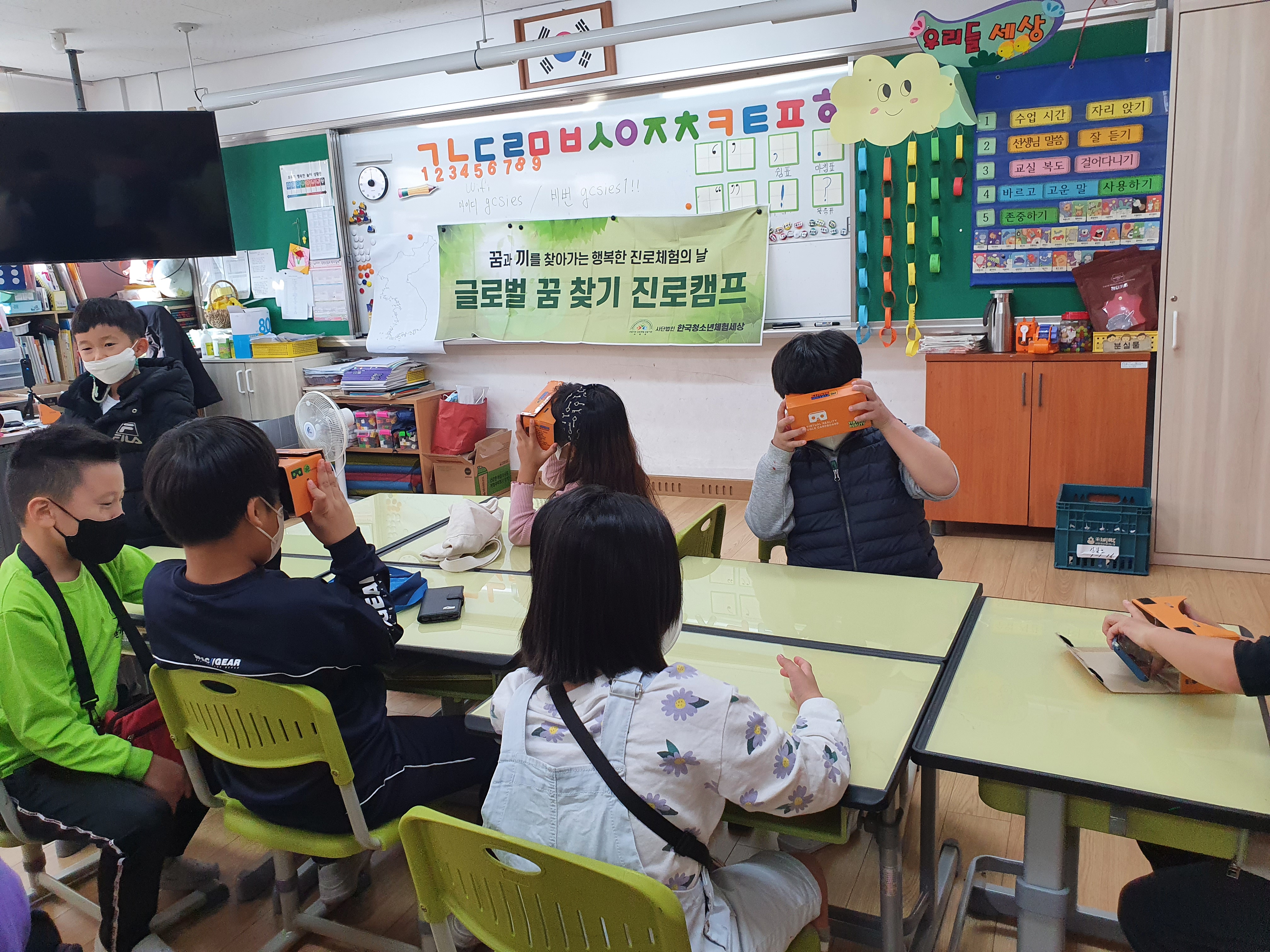 □ 1,2학년은 VR가상현실개발자, 드론전문가, 마술사, 캐리커처디자이너, 과학창의력CLASS, 방송특수분장사를 체험하였고 3,4학년은 VR가상현실개발자, 드론전문가, 마술사, 캐리커처디자이너, 방송특수분장사, 캘리그라피, 항공승무원을 체험하였으며 5,6학년 학년군 VR가상현실개발자, 바리스타, Science Magic, 방송특수분장사, 유튜브크리에이터, 스피치전문가를 학년군 수준에 맞고, 흥미와 호기심을 자극할 수 있는 체험활동을 정하여 운영하였다.
