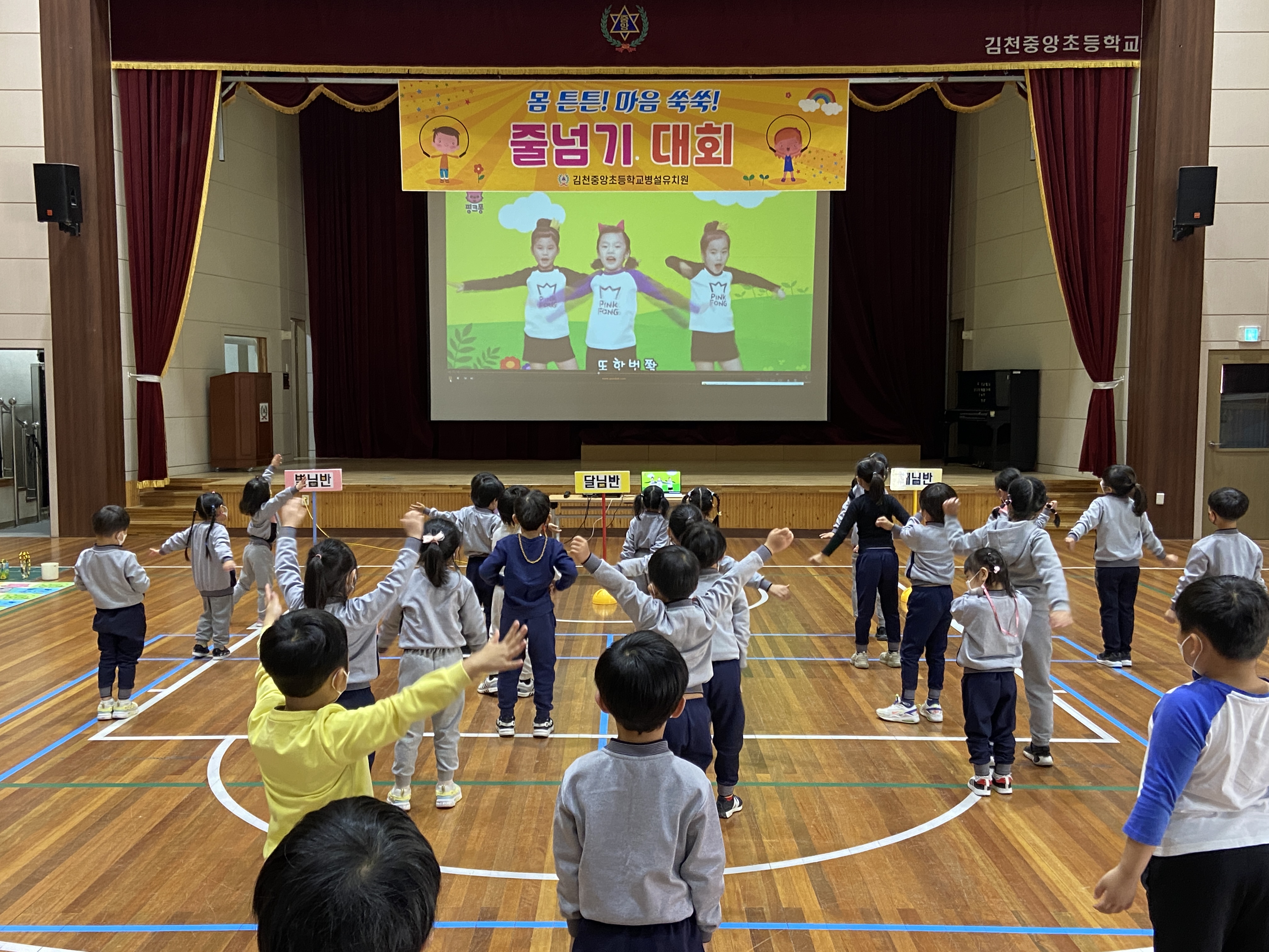 □ 정성・존중・협력으로 미소 짓는 행복학교, 김천중앙초병설유치원(원장 박재일)은 11월 8일(화) 몸 튼튼! 마음 쑥쑥! 줄넘기 대회를 유치원 내에서 실시하였다.