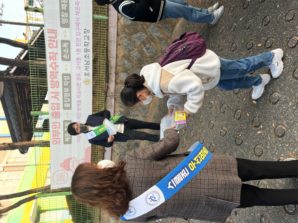□ 이번 교통안전 캠페인에서는 ‘멈추고 살피고 건너요’라는 캠페인 문구가 적힌 홍보 물품을 배포하였고 학생들에게 안전하게 등하교 하도록 캠페인 문구를 홍보하여 학생들의 안전한 등하교가 이루어질 수 있게 홍보하였다.