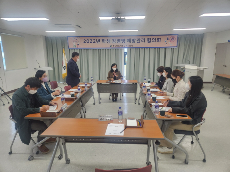 경상북도예천교육지원청(교육장 권혜자)은 9일 4층 대회의실에서 예천군보건소 감염병대응팀, 보건교사, 교육청 건강증진담당(자)등 10명이 참석한 가운데‘2022년 학생 감염병 예방관리 협의회’를 개최했다.