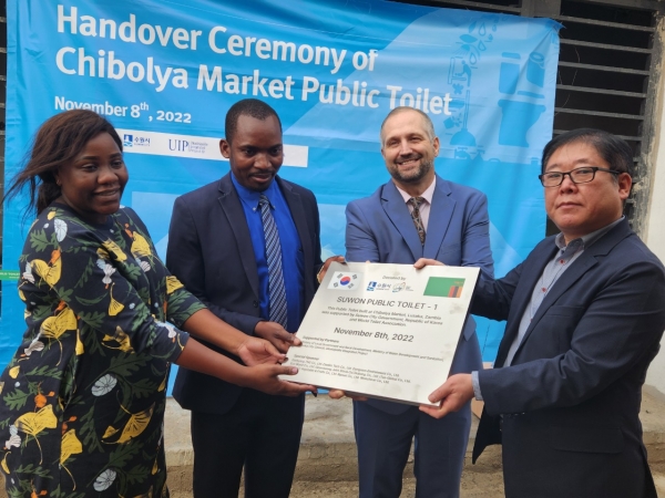 [금요저널] 수원시와 세계화장실협회가 잠비아 루사카시 치볼야마켓에 ‘수원화장실’을 건립하고 8일 준공식을 열었다.