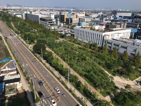 수원시는 미세먼지 저감, 열섬현상 완화 등 기후변화에 대응하기 위해 지난 2020년 4~12월 ‘수원델타플렉스 그린인프라 구축 미세먼지 차단숲 조성 사업’을 추진했다.