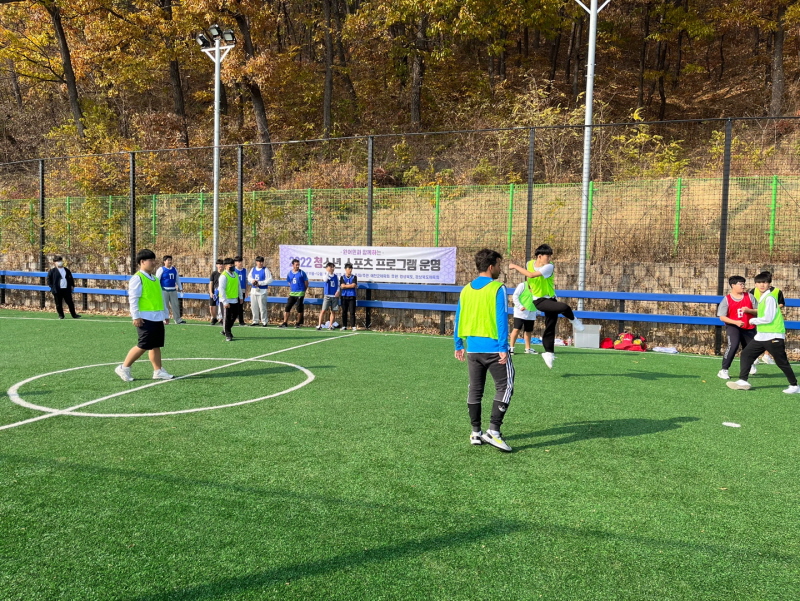 대창중학교(교장 남병규)는 11월부터 매주 1회, 중학교 2, 3학년 학생들을 대상으로 하는 영어 축구 수업인 “원어민과 함께하는 2022청소년스포츠프로그램”을 진행하고 있다. 외국인 지도자(스포츠전문지도자 자격 보유)가 진행하는 해당 프로그램은 예천 체육회가 주관하여 운영하는 사업으로, 참여자가 남학생임을 고려하여 관심도와 흥미도가 높은 스포츠 종목인 축구를 선정하여 운영하고 있다.