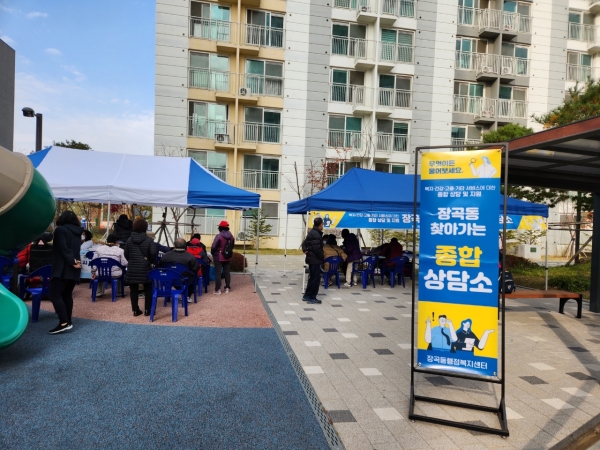 [금요저널] 장곡동 행정복지센터는 올해 마지막 ‘찾아가는 종합 상담소’를 지난 11월 7일과 8일에 각각 관내 LH19단지 및 서희스타힐스 단지 내에 설치·운영해 주민 복지 실현에 앞장서고 있다.