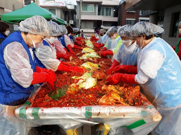 예년과 달리 포근한 날씨가 이어지는 가운데 참여자들은 배추 600포기를 정성을 다해 담가 김치 200상자를 관내 복지 사각지대에 있는 소외된 이웃과 사회복지시설 등에 전달했다.