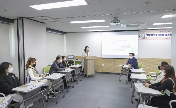 또한, 학령기 부모 교육에 참석한 다문화가족 부모들은 ‘초등학생 자녀 의사소통법’을 주제로 자녀와 소통하기 위한 대화법과 그림책 질문법, 감정판 활용법 등을 실습하며 부모의 역할에 대해 배웠다.