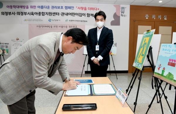 김동근 의정부시장은 아동권리존중을 약속하는 서약서에 사인을 하며 “아동의 권리가 실현되는 지역사회를 만들기 위해서는 어른들의 아동 권리에 대한 이해와 관심이 중요하다”며 “아이들이 건강하고 행복하게 자랄 수 있도록 앞으로도 아동학대 예방을 위한 다양한 노력을 통해 안전하고 행복한 사회 속에 아이들이 성장할 수 있도록 안전한 도시를 만들겠다”고 밝혔다.