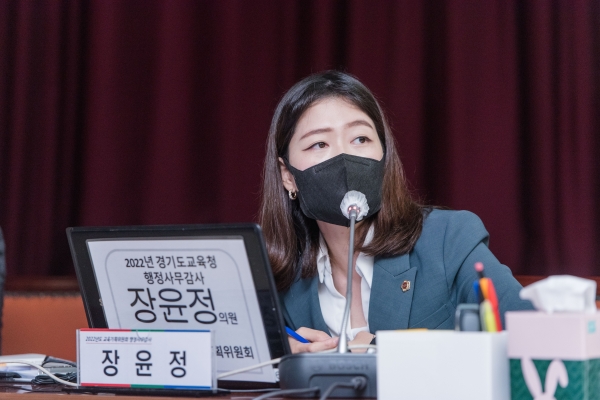 [금요저널] 경기도의회 교육기획위원회 장윤정 의원은 11월 14일 경기도의회 제365회 정례회 중 경기도교육청 남부청사에서 열린 경기도교육청에 대한 총괄 행정사무감사에서 교육 현장 내 교육복지사, 행정실 근무자인 공무원 등의 열악한 노동 환경으로 학교 구성원이 피해를 보고 있다고 지적했다.