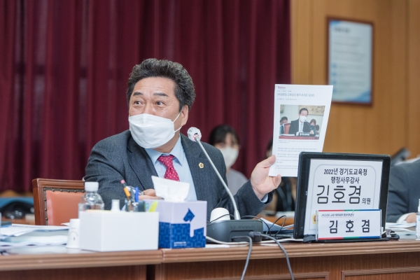 [금요저널] 경기도의회 교육기획위원회 김호겸 의원은 11월 14일 경기도의회 제365회 정례회 중 경기도교육청 남부청사에서 열린 경기도교육청에 대한 총괄 행정사무감사에서 학교급식실 조리종사원이 열악한 근무환경으로 직업병 및 사고 위험에 노출되어 있다며 개선이 필요하다고 강조했다.