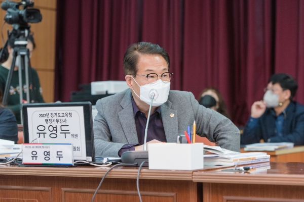 [금요저널] 경기도의회 교육기획위원회 유영두 의원은 11월 14일 경기도의회 제365회 정례회 중 경기도교육청 남부청사에서 열린 경기도교육청에 대한 총괄 행정사무감사에서 도교육청의 탁상행정을 비판하며 현장을 점검하고 실정에 맞는 교육 행정을 펼쳐야 한다고 지적했다.
