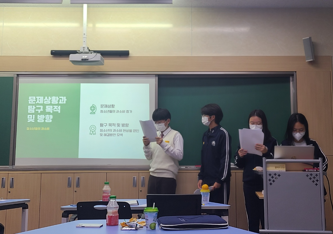 □ 이번 인문 학술한마당에서는 메타버스의 교육적 활용, 우리 지역 전통시장 활성화 방안 탐구, 청소년의 소비패턴 분석 후 해결방안 모색, 학생의 참여도와 집중력 향상을 위한 수업 방식에 대한 고찰 등 다양하고 참신한 주제에 대한 발표가 이루어졌다. 특히 발표 후 질의응답 시간을 통해 궁금증을 해결하고 의견을 주고받는 과정에서 인문학적 소양을 넓히는 계기가 되었다.