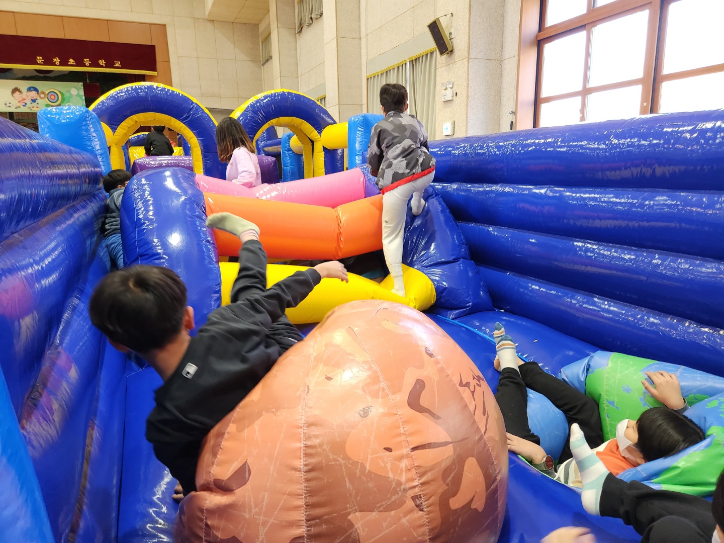 □ 운동장에는 각종 장애물을 뛰어넘으며 자신의 한계에 도전할 수 있는 ‘장애물 바운스’가 설치되었고 강당에는 다양한 스포츠 경기를 체험해 보면서 스포츠에 대한 이해도를 높이고 흥미를 불러 일으킬 수 있도록 ‘에어스포츠 바운스’를 준비하였다.