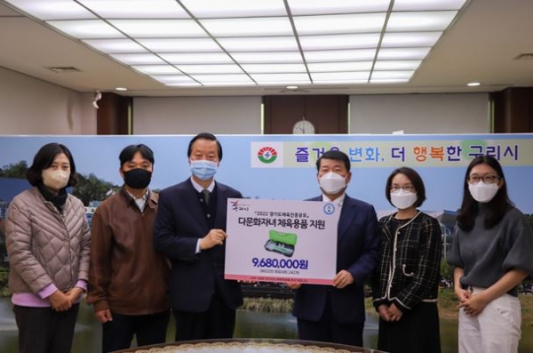 [금요저널] 구리시는 지난 14일 시청 3층 민원상담실에서 구리시체육회 주관으로 ‘구리, 활기찬 다문화자녀 체육용품 지원 전달식’을 개최했다고 밝혔다.