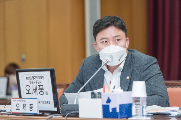 [금요저널] 경기도의회 교육기획위원회 오세풍 의원은 11월 14일 경기도의회 제365회 정례회 중 경기도교육청 남부청사에서 열린 경기도교육청에 대한 총괄 행정사무감사에서 경기도 신도시 내 과밀학급 문제에 대해 지적했다.