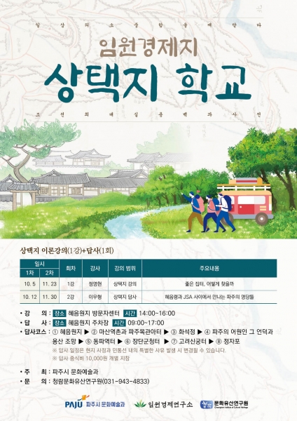 ‘상택지 학교’는 파주 장단 출신 대학자 풍석 서유구 선생의 실용백과사전인 ‘임원경제지’를 대중들에게 널리 알리고자 기획한 2022 임원경제지 학교의 일환으로 강의와 답사 2강으로 구성된다.