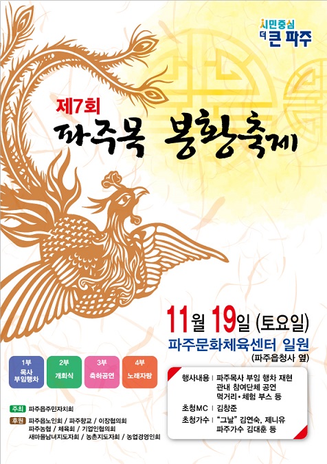 [금요저널] 파주읍 주민자치회가 주최하는 ‘제7회 파주목 봉황축제’가 오는 19일 파주향교, 파주문화체육센터 일원에서 개최된다.