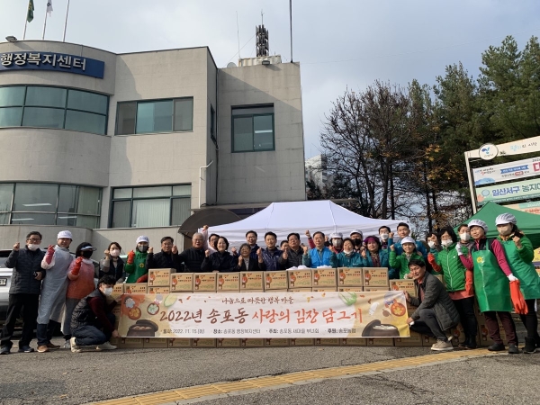 [금요저널] 고양특례시 일산서구 송포동 행정복지센터는 지난 11월 14일부터 11월 15일 양일간 송포동 행정복지센터 주차장에서 새마을부녀회를 비롯한 주민자치회, 통장협의회, 지역사회보장협의체, 시민안전지킴이 등 직능단체 회원 20여명이 참여한 가운데 김장 담그기 행사를 가졌다.