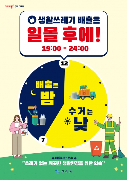 [금요저널] 구미시는 쾌적한 생활환경 조성을 위해 ‘생활쓰레기 배출시간 지키기’ 범시민 홍보를 진행한다고 16일 밝혔다.