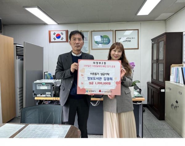 의정부시 정보도서관 김경희 주무관, 의정부2동에 성금 100만원 기탁