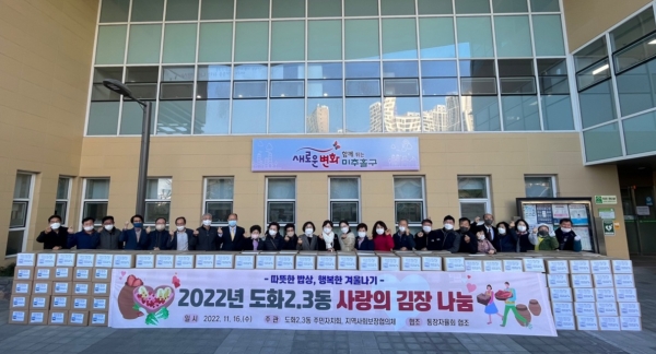 [금요저널] 인천 미추홀구 도화2.3동 주민자치회, 지역사회보장협의체, 통장자율회는 16일 사랑의 김장 나눔 행사를 진행했다.