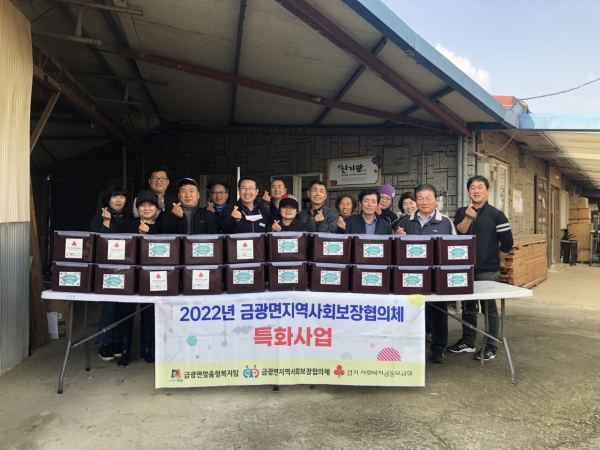 양승동 금광면장은 “한겨울을 위해 김장을 만들어 대비하듯, 금광면 복지사각지대 주민을 위해 우리 금광면지역사회보장협의체가 위기이웃을 조기 발굴하고 지원하는 데 노력함으로써 지역사회 복지증진에 최선을 다하겠다”고 전했다.