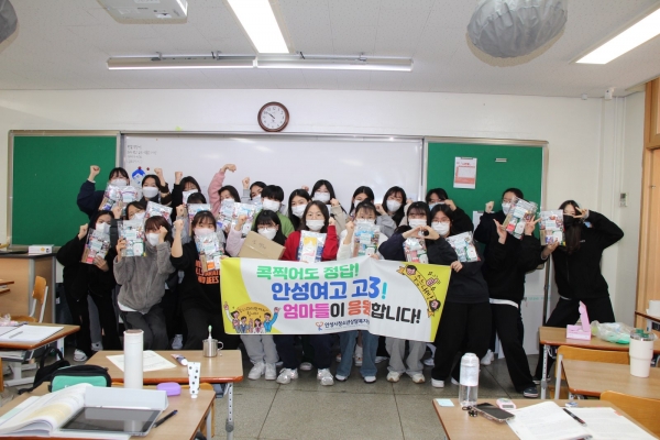 이번 수능응원사업은 지난 10월 11일부터 30일까지 안성관내 고등학교 3학년 청소년들을 응원하는 사연을 받아 응원 대상자가 속한 반 학생들에게 수능응원키트를 전달하는 방식으로 진행됐다.
