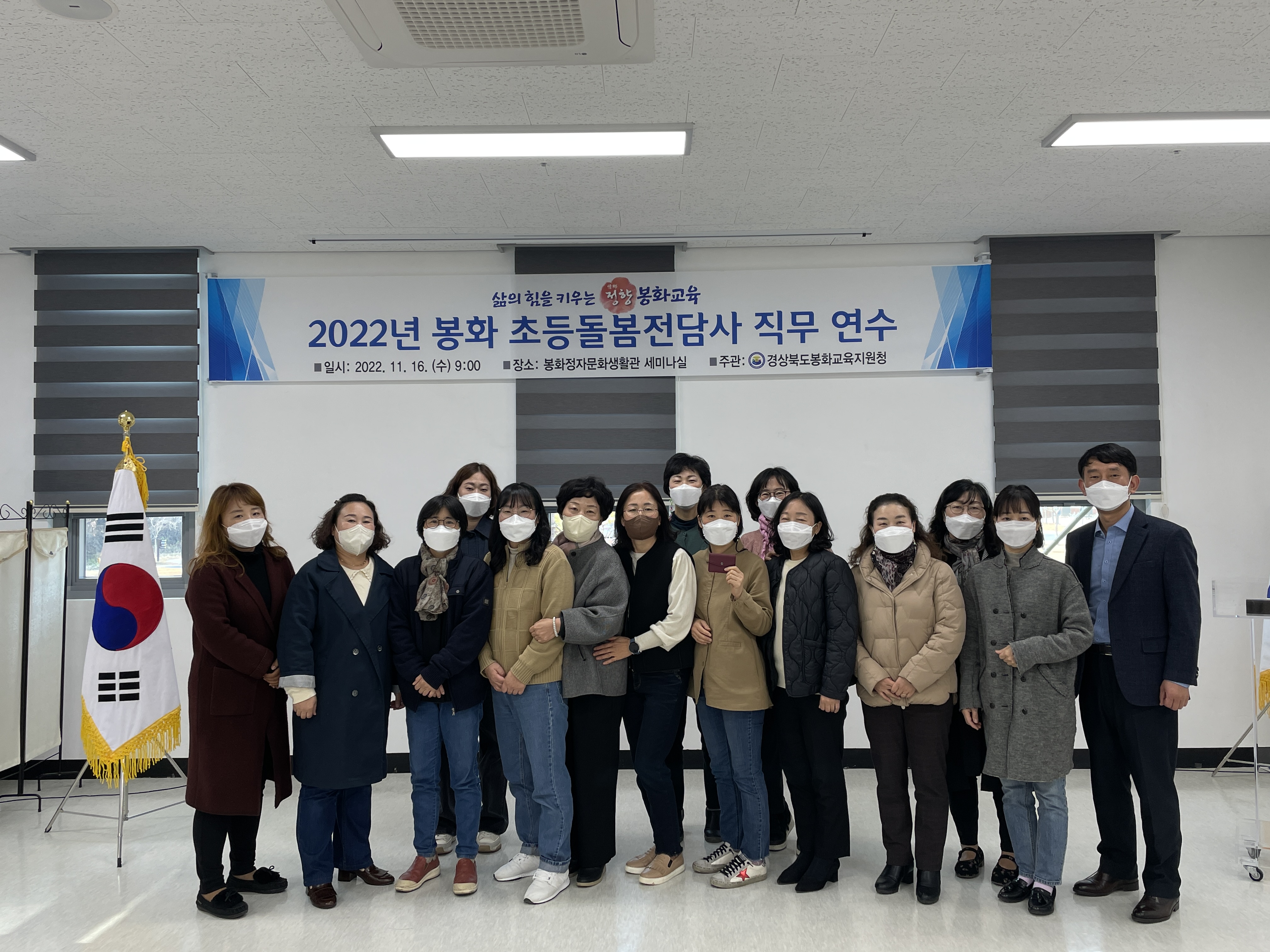 경상북도봉화교육지원청(교육장 박명호)은 2022년 11월 16일 관내 초등돌봄전담사를 대상으로 봉화정자생활문화관에서 초등돌봄전담사 직무연수를 실시하였다.