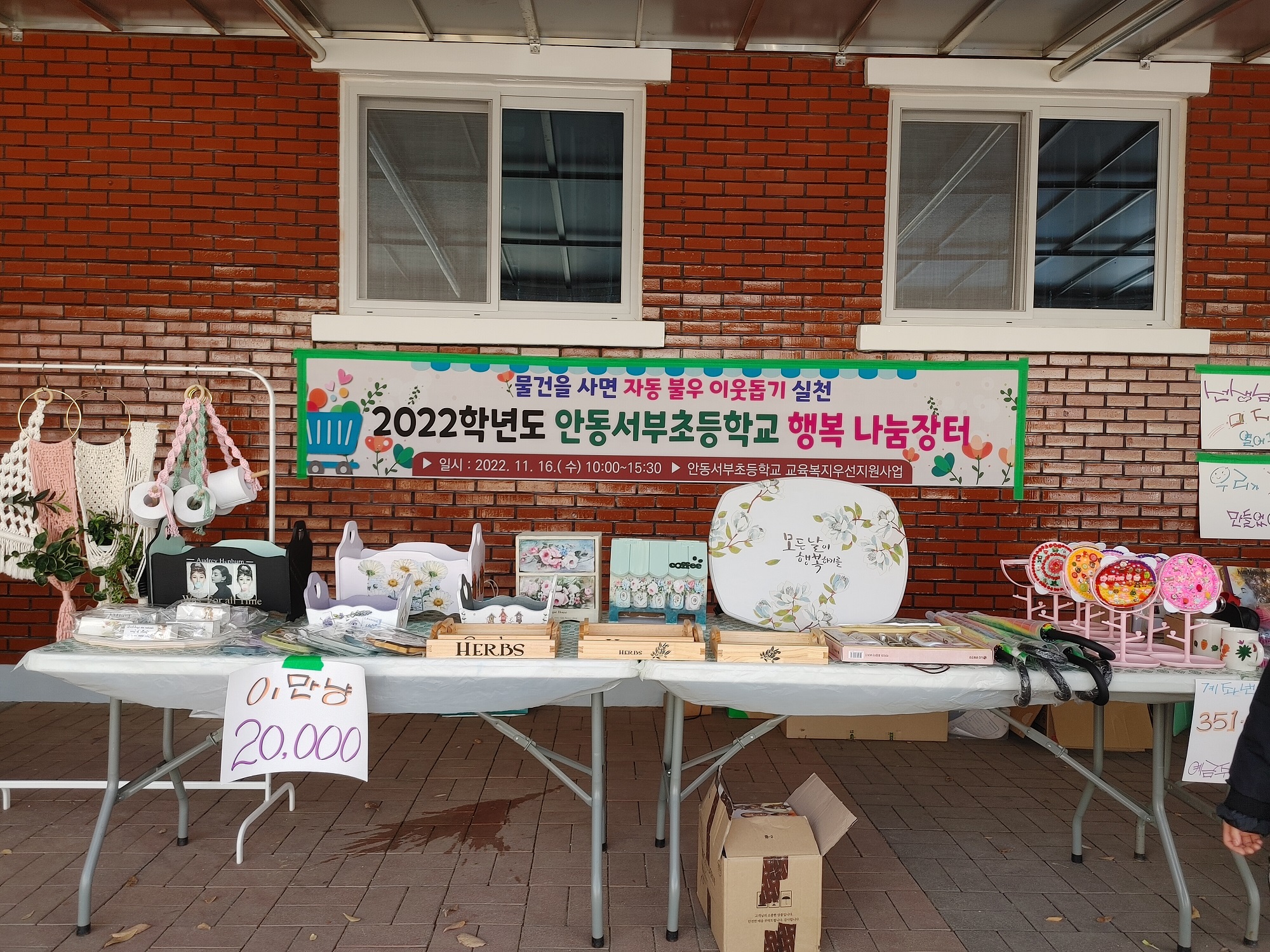 안동서부초등학교(교장 김의식)는 11월 16일(수)에 안동서부초 학예회와 함께 행복 나눔장터를 운영하였다.