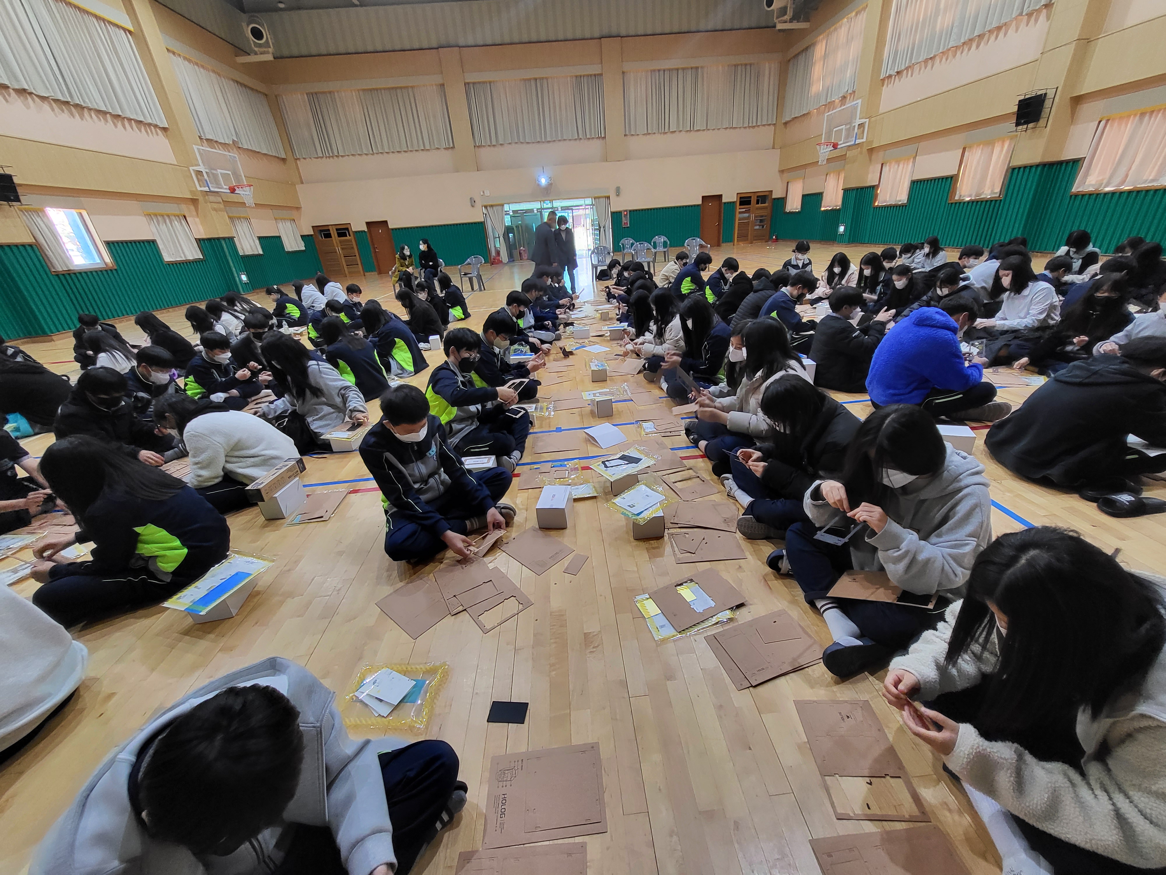 □ 실습수업에서는 홀로그램 키트 4단계 모형제작, 휴대폰 영상을 통한 홀로그램 변환체험 실습, 홀로그램 크로마키 영상변환 등을 체험을 하면서 창의적 사고력과 심미적 감성을 마음껏 발휘하였다. 학생들은 친구의 제작 영상이 홀로그램 기기로 송출되는 것을 보면서 뜨거운 호응을 보내기도 했다.