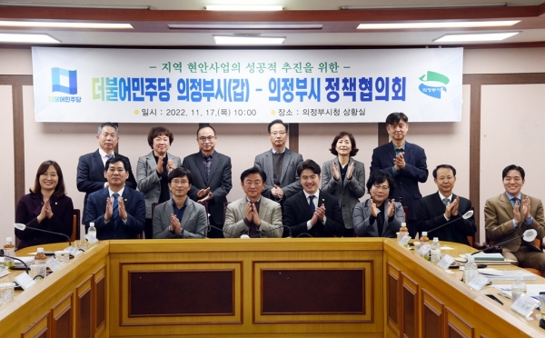 [금요저널] 의정부시는 11월 17일 10시 시청 상황실에서 더불어민주당 의정부시과 정책협의회를 열고 지역 현안 사항에 대해 공유 및 국·도비 예산 확보 방안 등을 논의하는 시간을 가졌다.