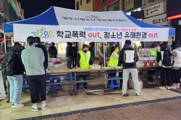 [금요저널] 영주시 청소년상담복지센터는 지난 17일 오후 5시 문화의 거리 일원에서 1388청소년지원단, 상담자원봉사자와 함께 위기청소년 발굴 및 예방을 위한 현장상담을 실시했다.