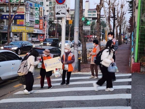 [금요저널] 고양특례시 대화노인종합복지관에서 11월 17일 수능을 앞둔 수험생을 격려하기 위해 ‘선배시민대학’ 참여자들과 함께 수능응원을 진행하며 핫팩과 간식꾸러미를 전달했다.