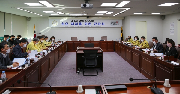 이날 간담회에는 김선옥 교육복지위원장을 비롯해 이봉관, 윤석경, 박소영 위원과 이소춘 부시장, 정용복 도시주택국장 등 관계공무원이 참석해 호조벌 농민 등으로 구성된 농민비상대책위원회에서 제기한 요구사항을 살펴보고 당면한 문제에 대한 추진 상황을 공유하며 해결 실마리를 찾기 위해 다양한 의견을 개진했다.